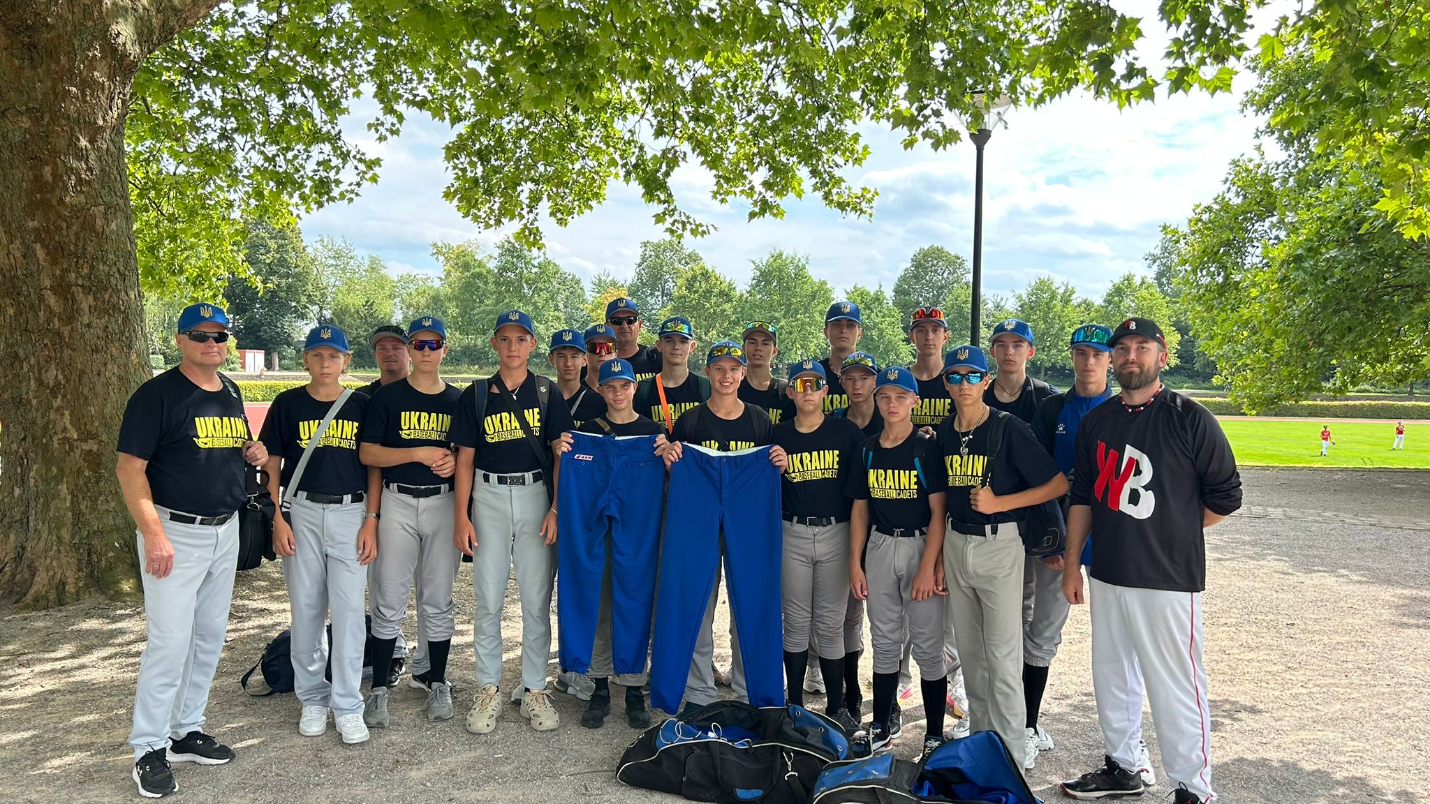 Neben sportlichem Ehrgeiz blieb auch der Teamgeist nicht auf der Strecke. Ein besonderes Highlight war die Spendenaktion: Die blauen Baseballhosen, die wir dank der großzügigen Unterstützung der DBA (Deutsche Baseball Akademie) erhalten hatten, gaben wir nach dem Turnier an das ukrainische Team weiter – dort passten sie wunderbar zu den Vereinsfarben. Die große Dankbarkeit der ukrainischen Coaches zeigte, wie sehr solche Gesten verbinden können. Für uns war es eine Freude, anderen Baseballvereinen zu helfen und so einen Beitrag zur Gemeinschaft im internationalen Baseball zu leisten.