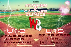 Am 07.02.2026 finden zwei Pitcher/Catcher Clinics für die U12 (Jahrgang 2014 -2016) in Hagen (Friedrich-Harkort-Schule, Twittingstraße 23 a-b, 58135 Hagen) statt, aufgeteilt in zwei Gruppen: