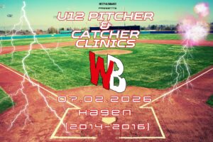 Am 07.02.2026 finden zwei Pitcher/Catcher Clinics für die U12 (2014- 2016) in Hagen ( Friedrich-Harkort-Schule/Sporthalle Quambusch, Twittingstraße 23a, 58135 Hagen) statt, aufgeteilt in zwei Gruppen: